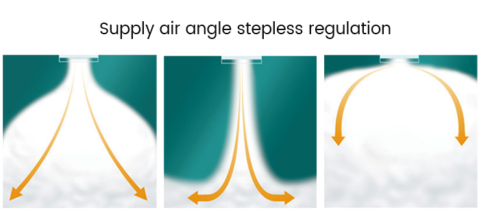 產品在風機和風口之間無任何部件,阻力更小,送風距離遠,冷熱出風量高